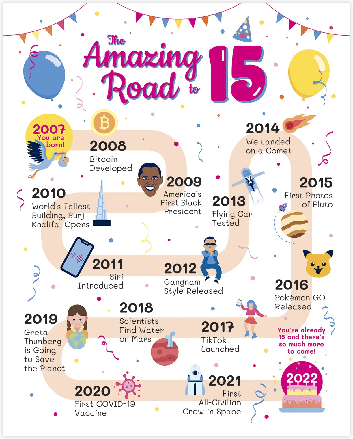 Amazon Com 15th Birthday Gifts For Girl Or Boy 15th Birthday Decorations Road To 15 Birthday For Her Or Him Table Decor Birthday Card Birthday Gift Ideas For 15th